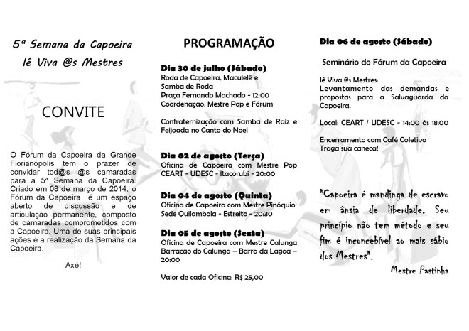 Aos camaradas do Fórum da Capoeira da Grande Florianópolis, que me dão força para a luta!
